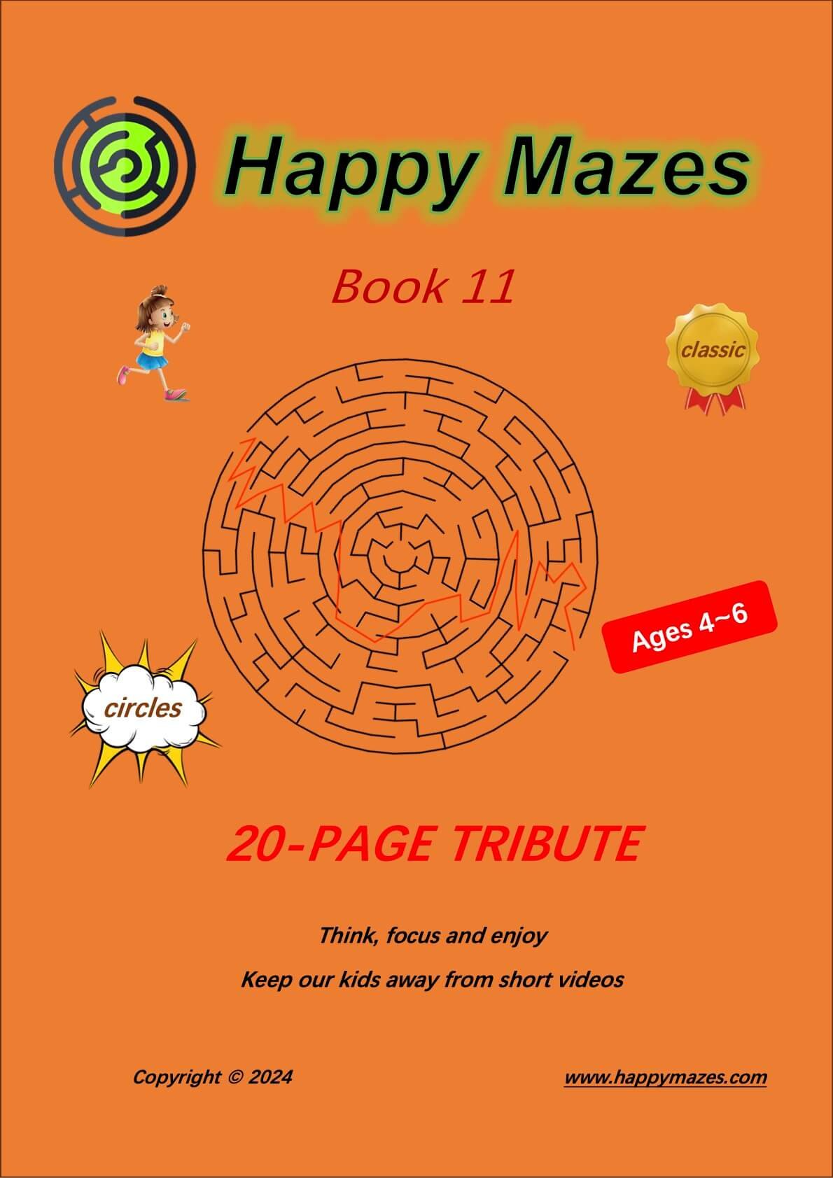 Circle mazes for kids ages 4~6. 20-pages in total, designed for A4 printing paper. The book is free to download.